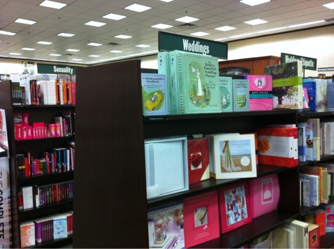 Think this might be the reason for the 50% divorce rate… The Weddings section at B&N is twice the size of the Sex section… the Wedding only lasts one day…